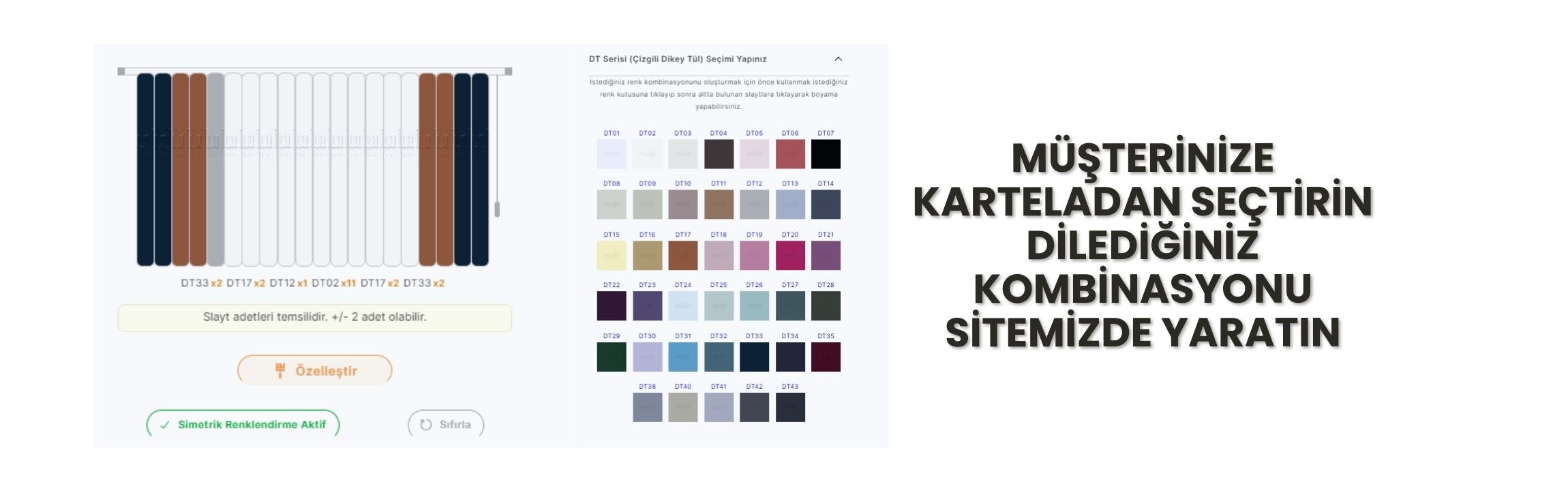 Dikey tül perdeleri doğrudan kendi üretimimizden sunuyoruz. Bu sayede en yüksek kaliteyi aracı maliyetleri olmadan, en uygun fiyatla sağlıyoruz. Kullandığımız kumaşlar birinci sınıf, işçilik ise tamamen kontrollü üretim sürecimizin parçası. Hızlı termin avantajımızla siparişleriniz kısa sürede hazırlanır ve sevk edilir. Üretici gücümüzle kalite, hız ve fiyatı aynı noktada buluşturuyoruz.
